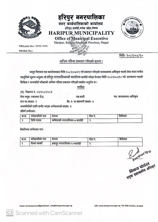 अन्तिम नतिजा प्रकाशन गरिएको सूचना । #haripurmun #Notice