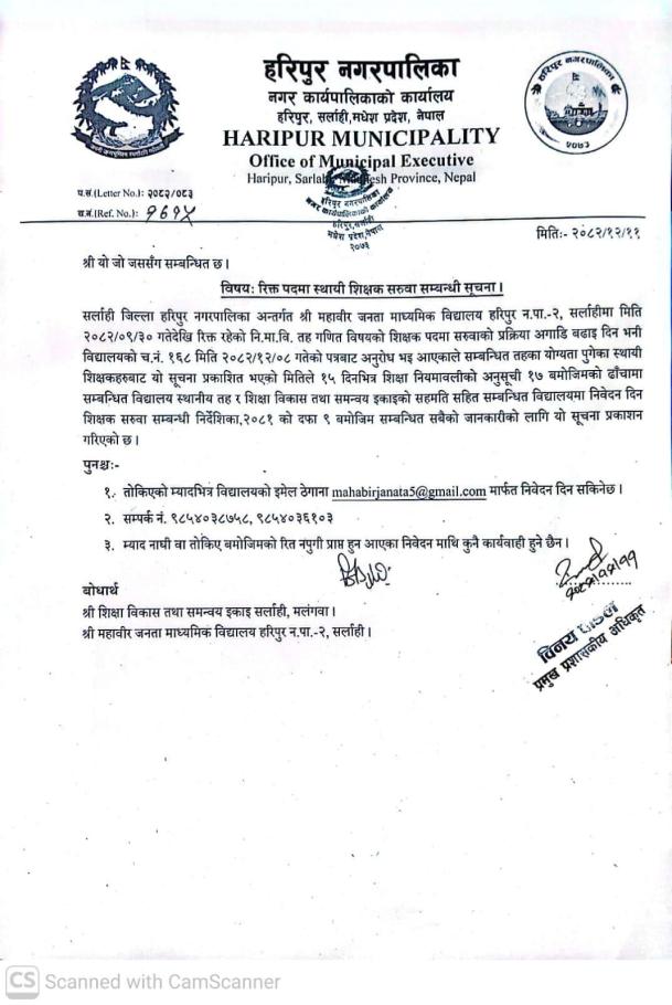 रिक्त पदमा स्थायी शिक्षक सरुवा सम्बन्धि सूचना ।