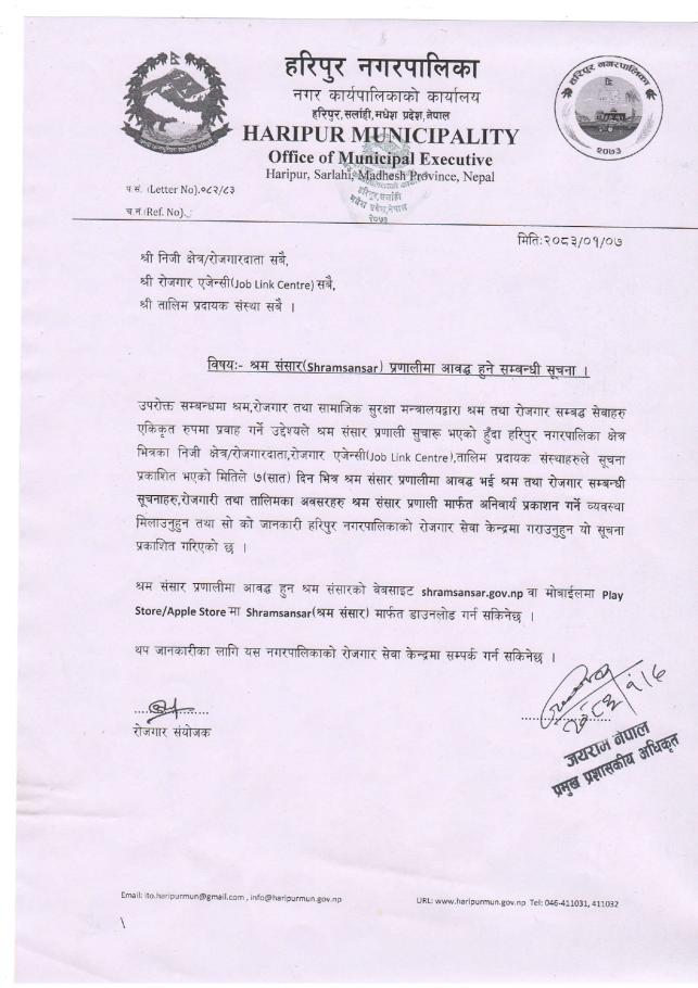 श्रम संसार (Shramsansar) प्रणालीमा आवद्ध हुने सम्बन्धी सूचना ।