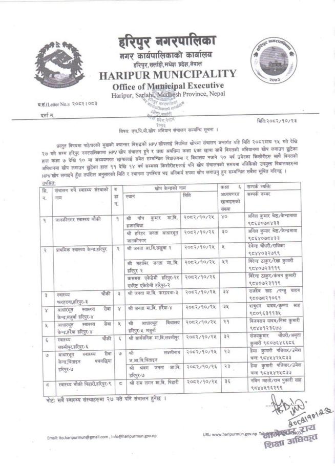 एच पि भी खोप अभियान सम्बन्धि सूचना | #haripurmun #Notice