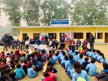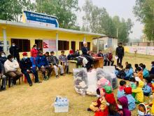 जिल्ला प्रशासन कार्यालयको सहयोगमा हरिपुर नपा -२ स्थित जनकल्याण प्राथमिक विद्यालयमा अध्ययनरत बालबालिकाहरुलाई न्यानो लुगा र जुत्ता लगायत सामग्री वितरण नगर प्रमुखज्यू, प्रजिअज्यू, उपप्रमुखज्यू, प्रमुख प्रशासकीय अधिकृत र वडाध्यक्ष लगायतको उपस्थितिमा सम्पन्न । ( मिति: २०७९।०९।१४ गते विहिबार । )