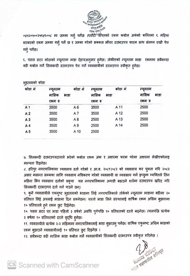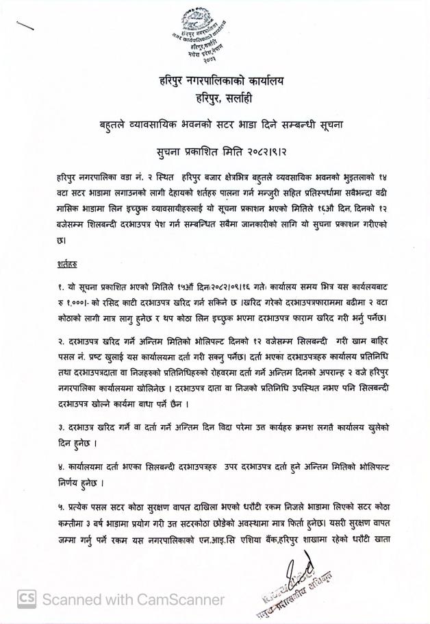 बहुतले व्यवसायिक भवनको सटर भाडा दिने सम्बन्धि सूचना । #haripurmun #Notice