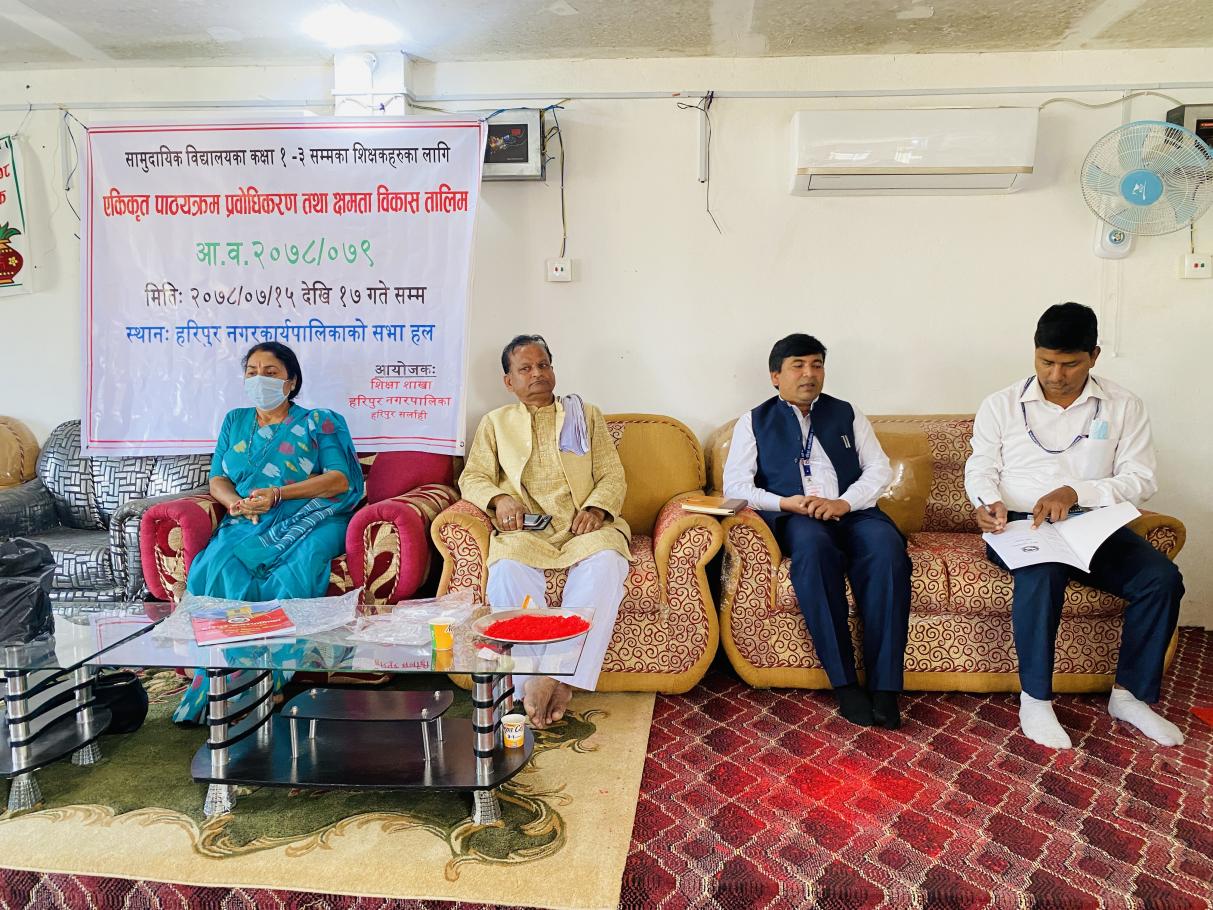 सामुदायिक विधालयका कक्षा १ देखि ३ सम्मका शिक्षकहरुका लागि एकिकृत पाठ्यक्रम प्रवोधिकरण तथा क्षमता विकास सम्बन्धी ३ दिने तालिम हरिपुर नगरपालिकाको सभाहलमा सुरु ।